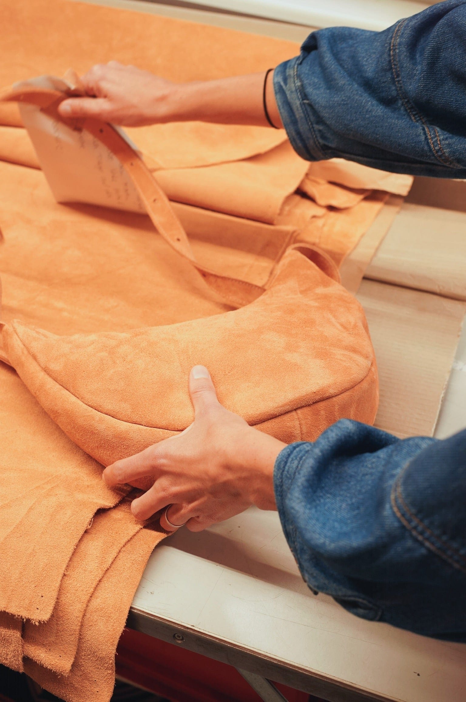 Die Bio-Baumwolle beziehen wir von renommierten deutschen Webereien, und das Leder für unsere Taschen stammt von Rindern aus Biohöfen im Süden Deutschlands. Für limitierte Editionen nutzen wir hochwertiges Leder aus Überproduktionen, um Ressourcen bewusst wiederzuverwenden – ein Ausdruck unserer Verantwortung für nachhaltiges Handwerk.